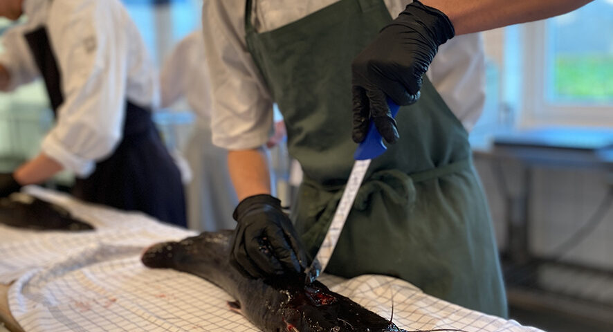 Eleverne står for udtagning, filetering, pakning og mærkning af fisken. I alt håndteres 842 kilo. Noget bruges i undervisningen, noget serveres i kantinen, og resten indgår i projekter og udvikling. Selv skindet bliver brugt til fiskelæder, så intet går til spilde.